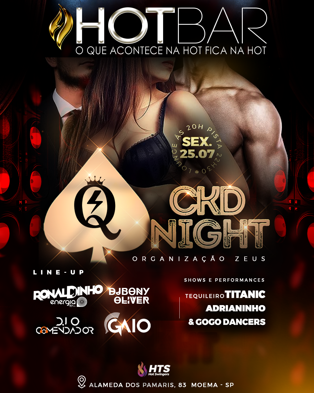 Sexta-Feira dia 25 de Julho de 2025, acontece em Moema a festa Cuckold Night, promovida pela Hot Bar São Paulo, a melhor casa de swing e balada liberal de São Paulo. A festa inicia as 20:00 com a abertura do lounge onde os casais de encontram para um bate-papo, a paquera pega fogo com a abertura da pista as 22:30.