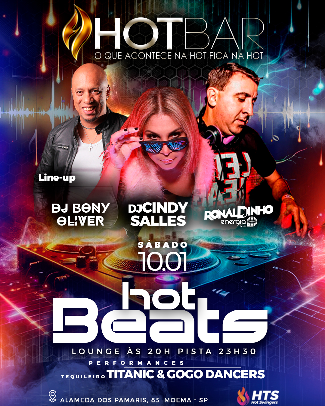 Sábado dia 10 de Janeiro de 2026, acontece em Moema a festa Hot Beats, promovida pela Hot Bar São Paulo, a melhor casa de swing e balada liberal de São Paulo. A festa inicia as 20:00 com a abertura do lounge onde os casais de encontram para um bate-papo, a paquera pega fogo com a abertura da pista as 22:30.